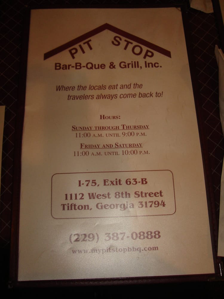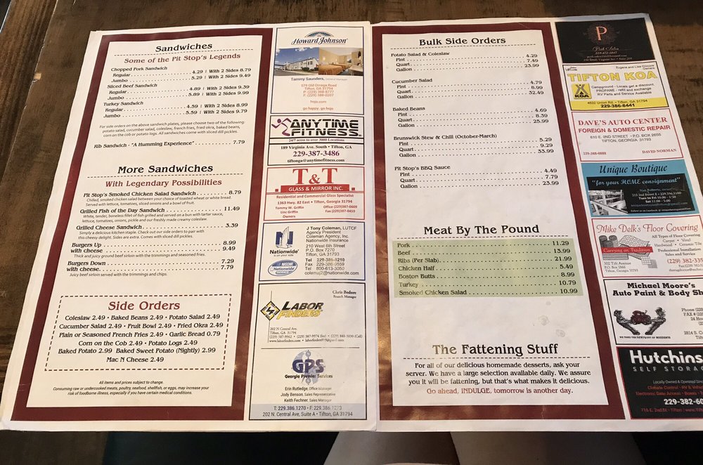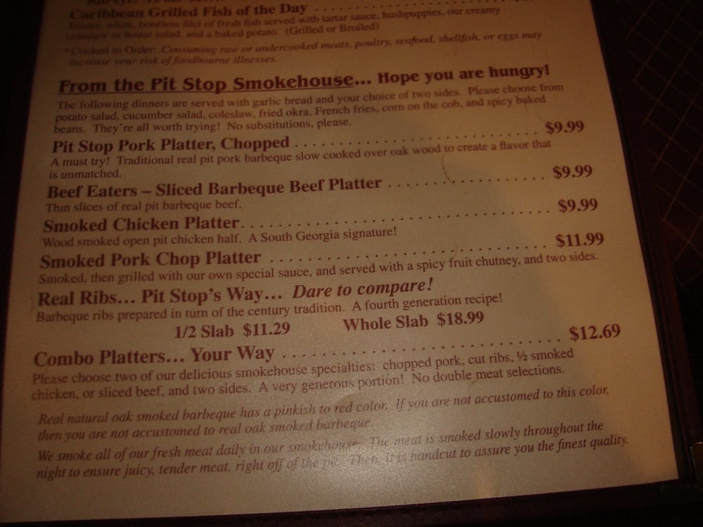 Introducing the Menu at Pit Stop Bar-B Q & Grill